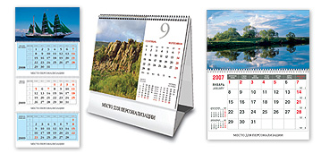Настенный календарь – вертикальный 297 х 420 мм или горизонтальный 420 х 297 мм.